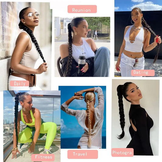3 EXTENSIÓNES DE CABELLO SINTÉTICO DE COLETA TRENZADA CON ELÁSTICO