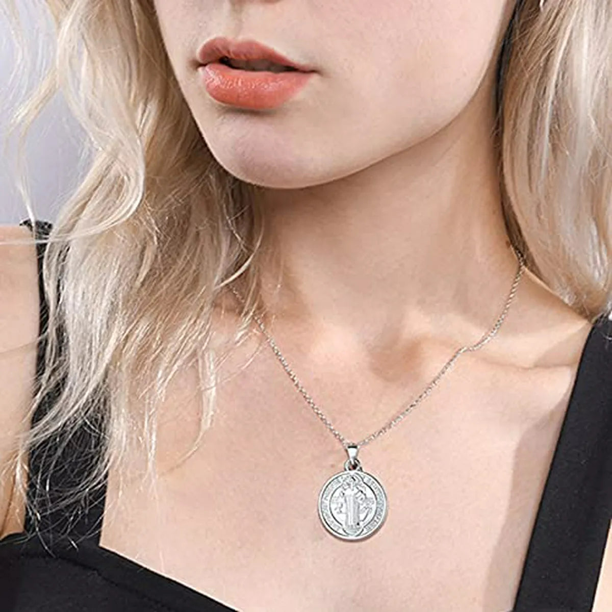 Luce con orgullo la Cadena San Benito en Acero Inoxidable, de 50 cm de largo con medalla de 15 mm. Su diseño elegante une estilo y protección espiritual en un solo accesorio 🙏.