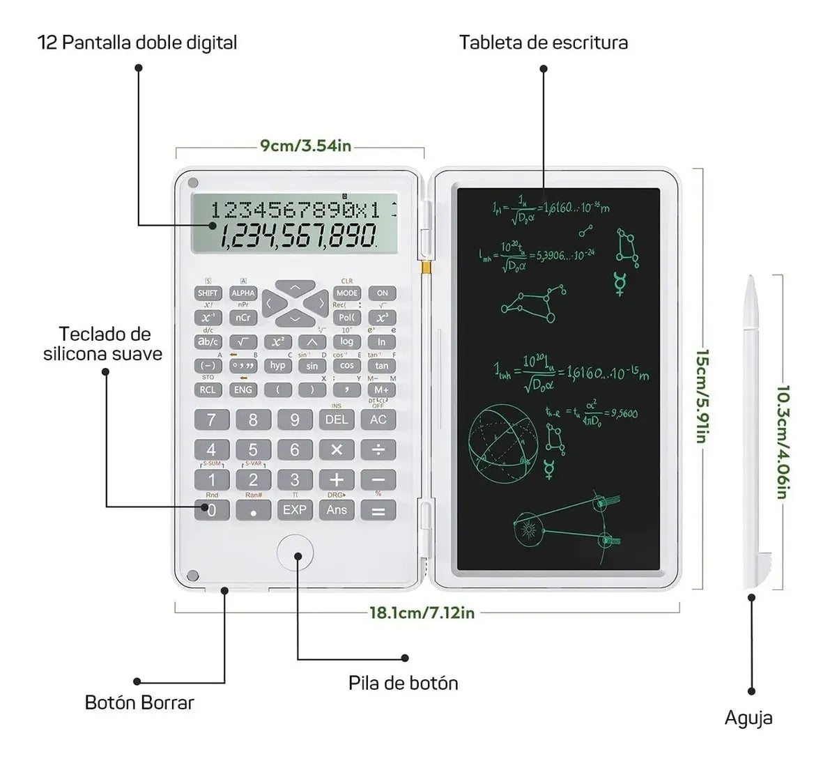 La CALCULADORA CIENTÍFICA CON PIZARRA MÁGICA es la solución perfecta: combina 240 funciones avanzadas con una práctica pizarra gráfica reutilizable, ideal para estudiantes y profesionales.