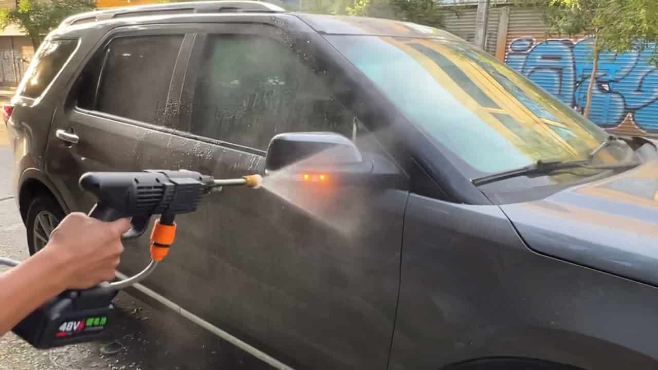No tener que usar cables es lo mejor. La conecto al balde y en minutos dejo el patio y la moto impecables.