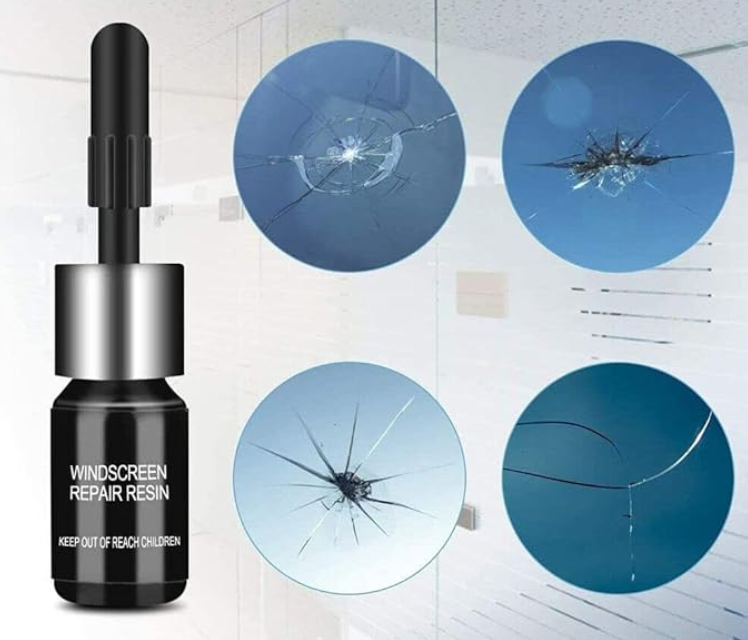 La resina penetra la grieta y la rellena completamente, dejando un acabado transparente. Repara daños comunes en vidrios de autos, como fisuras y pequeños impactos. Es rápido, duradero y fácil de usar.