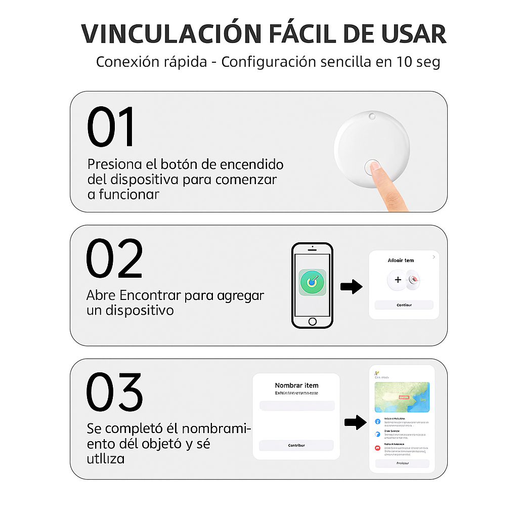 Configúralo en segundos desde la app “Buscar” de tu iPhone. También recibirás notificaciones si dejas tus objetos olvidados. 📢