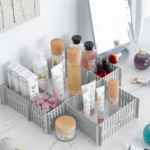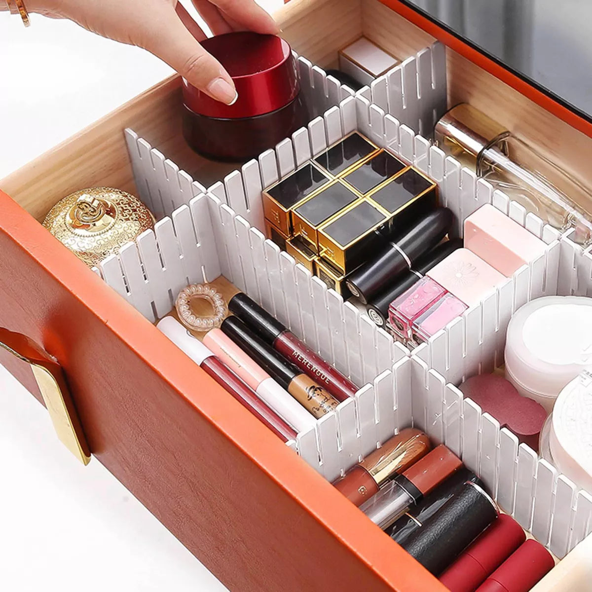 Ropa interior, maquillaje, utensilios de cocina… ¡todo revuelto! 🌀 Con el ORGANIZADOR DE CAJONES AJUSTABLE CON REJILLA, todo estará clasificado, visible y al alcance. 💡