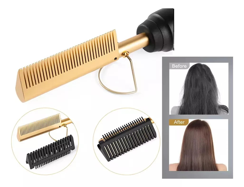 Este innovador peine caliente combina la potencia de la tecnología cerámica de alta temperatura con un diseño profesional, permitiéndote crear peinados impecables en cabello seco o húmedo.